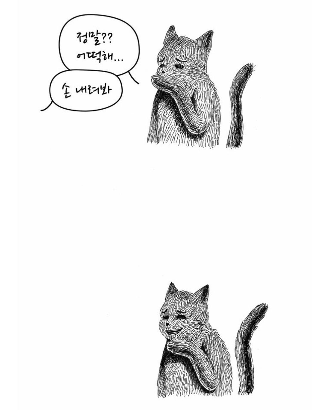 1. 진짜 슬퍼함. 2. 정신차림. 3. 어? 어쩌면...