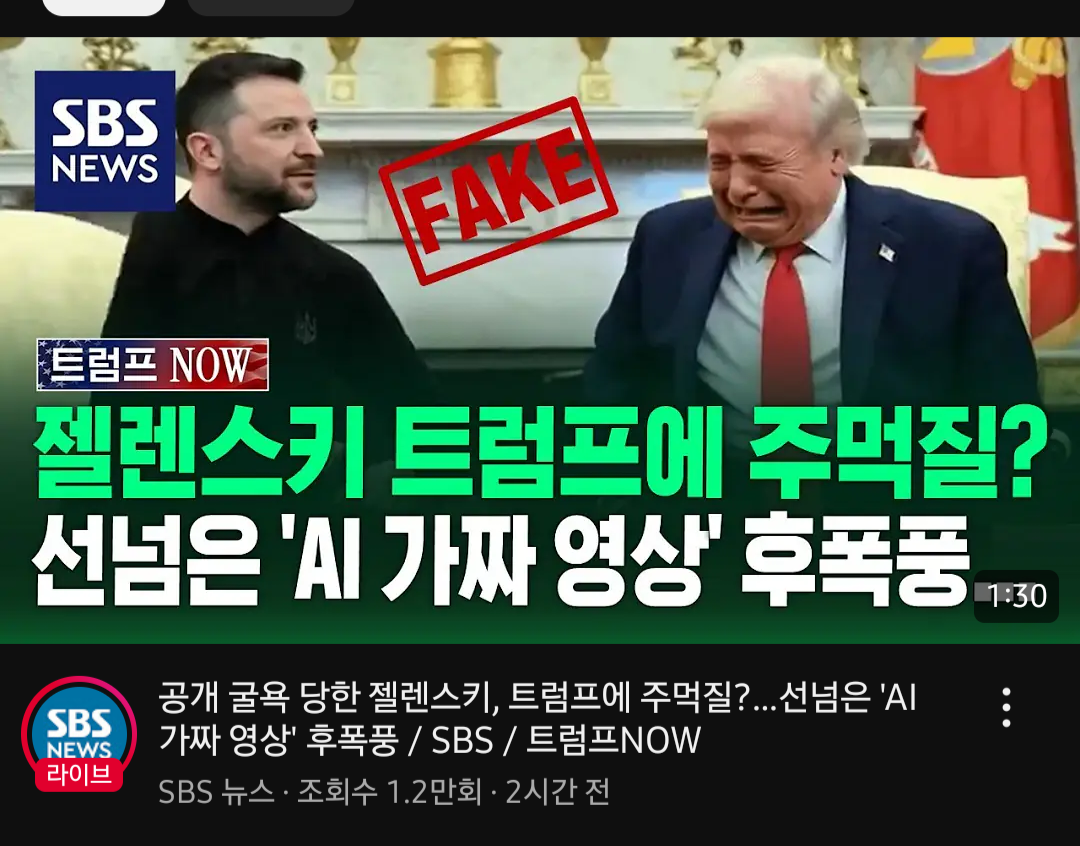 회담의 실망스런 결과로 이런 딥페이크로 트럼프를 조롱하는 영상들이 나온다는 내용이겠지만 기사 제목 진짜 사이버렉카 그 자체네