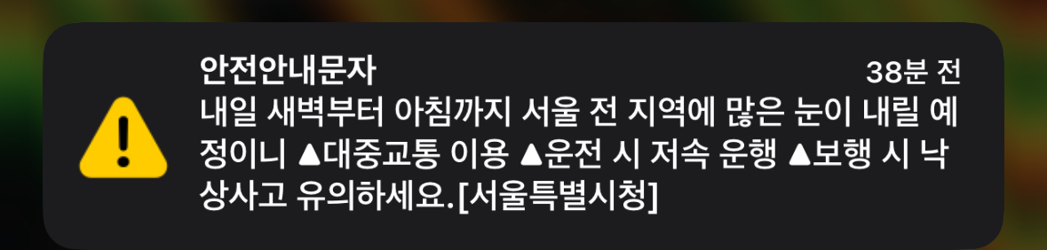 지금 비가 억수로 오는데 저런 문자 오드라 아니 지금 이럴깨 영하로 내려가면 진짜 아침 죽는다구!! 퇴근해야된다고!!