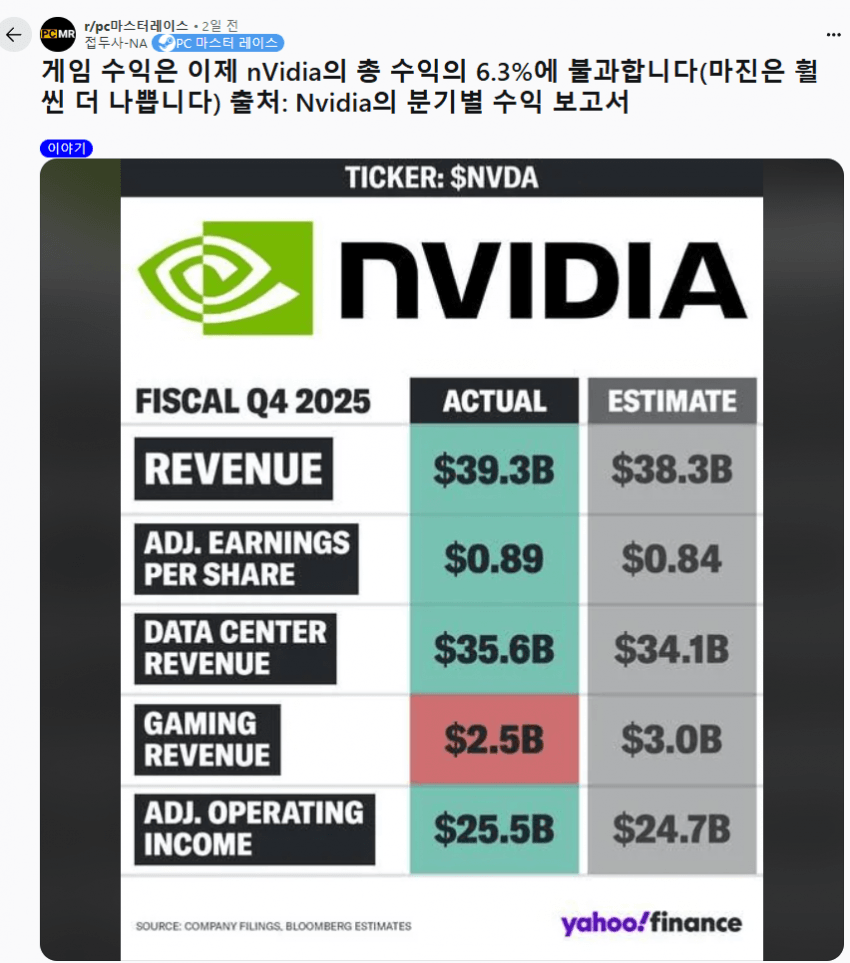 게이머들 : AMD, 인텔 힘내라! AMD, 인텔 : ㅎㅎ 우리도 게이밍 시장은 이제 2~3순위인데? ㅋㅋ | 25.03.02 22:30 | | |