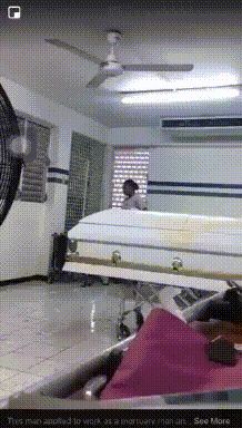 하하 고객님 신입 놀라게 부활하면 안되신다니깐요 빨리 다시 누으세요 화장시간 얼마 안남았어요