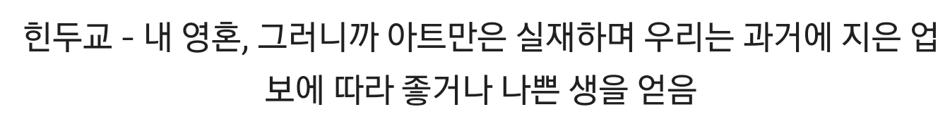 힌두교 - 내 영혼, 그러니까 아트만은 실재하며 우리는 과거에 지은 업보에 따라 좋거나 나쁜 생을 얻음