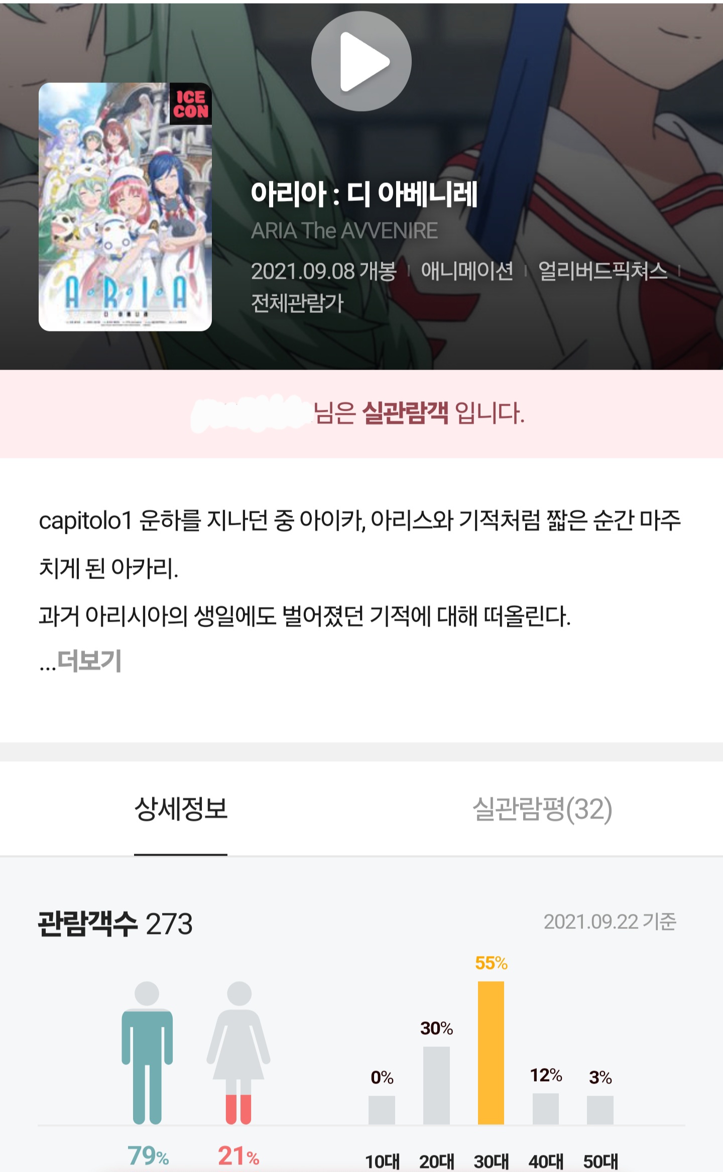 난... 영화관에서본 273명중 한명이다....! 이렇게 좋은 애니를 왜 이렇게 안보는지... 자극에 너무 길들여진건가...