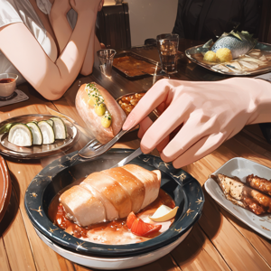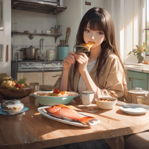 모든 일에 열심히인 루리야, 4인용 식탁에 고상하게 앉아서 멍게를 뜯어먹고 있는 싱싱한 고등어를 그려주겠니? | 25.03.04 17:40 | | |