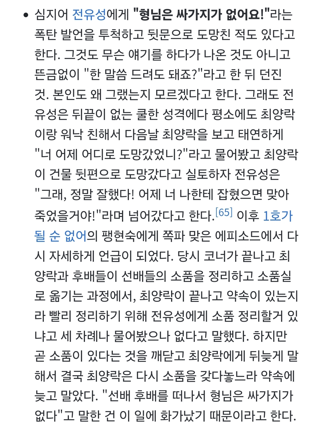 혹시나 해서 검색해보니까 몇년전 사우나 폭행(이건 서로 화해하고 끝났다고 함.) 사건은 기사가 뜨는데, 이건은 기사도 없고, 어디 게시판 글 남은 것도 안보이는데, 실제로 뭔 일 제대로 있었다면 안남아 있을리가 없지 싶은데 말이여. | 25.03.04 06:31 | | |
