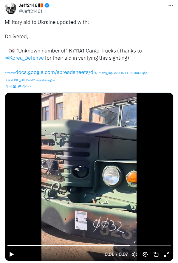한국 닷지 기반으로 개량해서 쓰는 곳은 있는데, 도색이랑 인식번호 적는 방식이 아예 다르고, 퇴역차량 공여받은 동남아국가가 있긴한데, 거기도 인식번호 적는 방식은 다를 뿐더러 걔들은 우크라에 장비 나눠 줄 정도로 넉넉한 애들도 아님. | 25.03.04 13:38 | | |