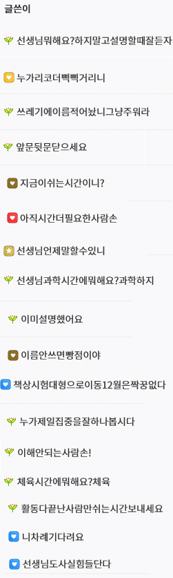 나랑 10살차이나던 고2 담임.. 고1때 초임이면서 담임 역할을 맡은 불쌍한 20대 중반의 사회과 선생님으로 고1, 고2 2년간 우리랑 스타도 하고 킹오파도 하면서 잘 놀다가 고3 입시는 역시 무리였는지 종종 교과 대타로만 고3 수업에 들어오고 고1로 내려왔었는데 후배들 이야기 들어보니 ㅁㅊㄴ이라고 하드라 ㅋㅋㅋ | 25.03.04 12:43 | | |