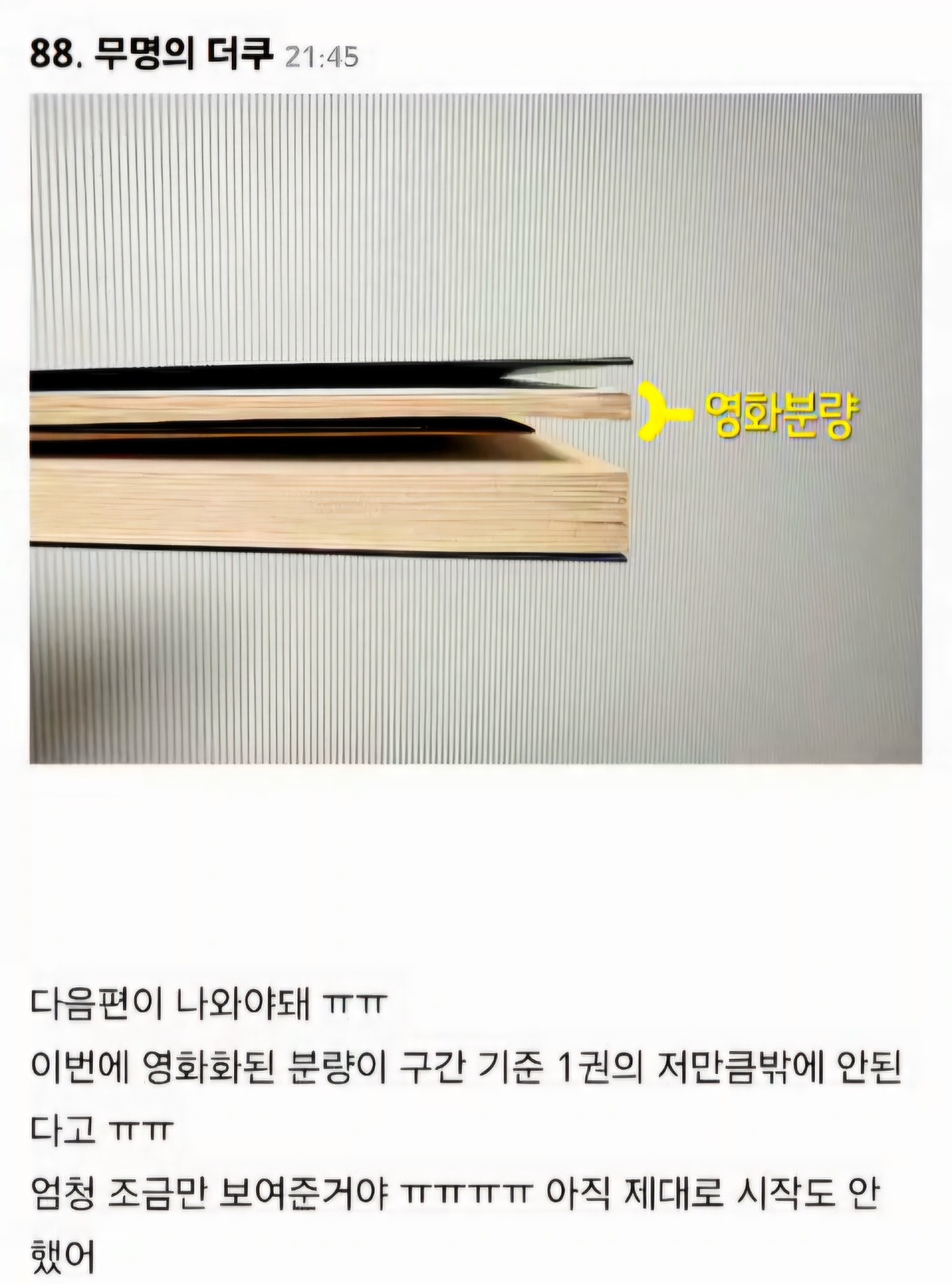 시점이 너무 앞뒤로 왕복뜀뛰기하니까 헷갈리는것도 있던거같음 안그래도 소설 읽은지 20년은 되었을건데 기억도 안나고 이미지만 남았는데...ㅋㅋㅋㅋㅋ | 25.03.04 13:18 | | |