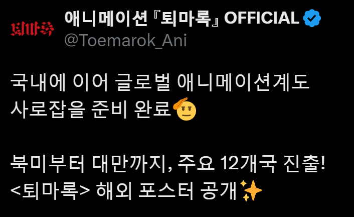 ㅇㅇ 북미부터 대만까지 12개국 계약 체결도 돼서 알아서 본전은 뽑을듯 애니 약소국 한국 성적은 미키17같은 경쟁작도 있는거 치곤 나쁘지 않고 | 25.03.04 19:33 | | |