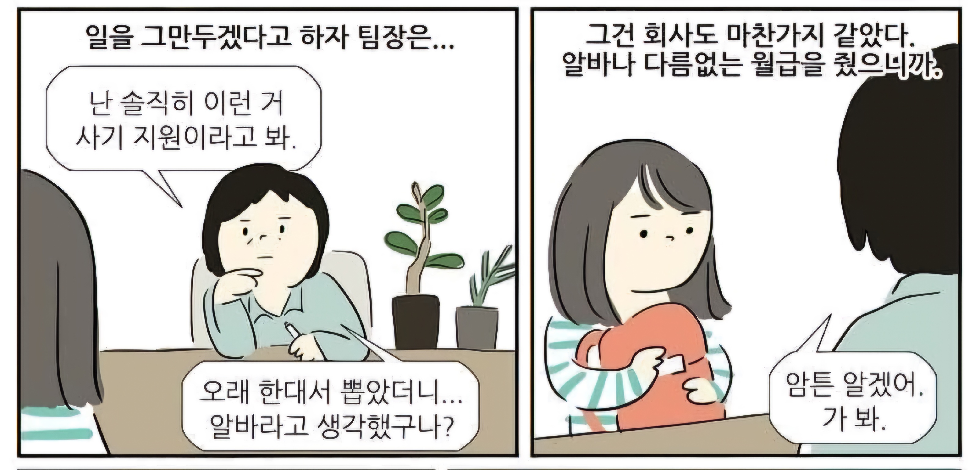 콜센터는 이거보고 절대하면 안되겠다 생각했지 참고로 여기 나오는 주인공 소희는 현장학습이란 명목하에 최저임금보다 못한 임금은 주면서 제일 마지막에 상담하는 (불만애기하는 고객)이 마지막 으로 오는곳이라 화도 최대로 애기하는곳인데 결국 않좋은 선택을 하는데 웃긴거는 교육부나 고용노동부는 떠넘기기급급하고 학교란곳은 실적위주라는 명목하에 계속버티라는 가스라이팅을 시전했습
