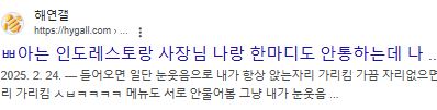 어...음...ㅋㅋㅋㅋ많이 치는거도 보통은 그...사인으로 여겨지는데 | 25.03.05 07:16 | | |