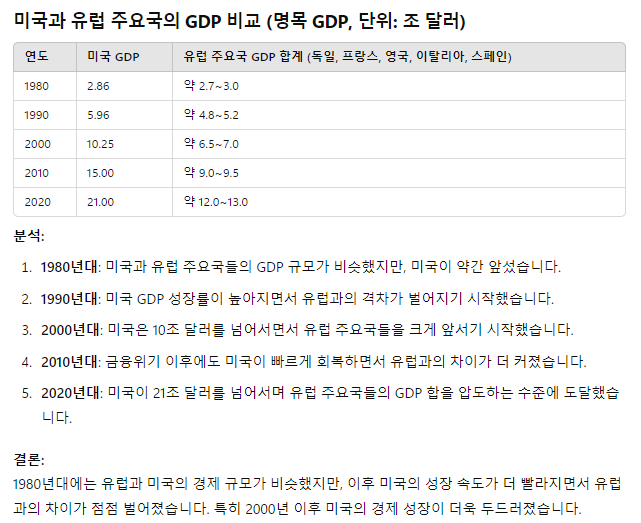 ㅇㅇ 유럽이 미국보다 더 거대했음. 그런데 미국은 거기서 2.5배 성장하고 유럽은 그대로 정체