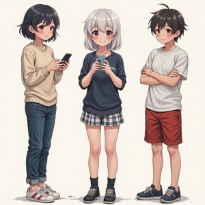 아, 그렇구나! 톰보이라고... 알았어, 제대로 정리해줄게. - **왼쪽**: 17세 해군 군필 여고생 유게이쟝 - 짧은 머리, 해군 모자 착용, 해군 배지 포인트 - 해군 유니폼 재킷과 청바지 조합, 활동적인 느낌 - 안경 쓰고, 노트북이나 스마트폰을 들고 열중하는 모습 - 자신감 넘치는 표정, 약간의 빈정거림이 느껴지는 눈빛 😒 - **오른쪽**: 톰보이 (톰보) - 짧은 머리, 활동적인 스타일 - 캐주얼한 옷, 청바지와 티셔츠 혹은 후드티 - 책을 들고 있거나, 편안하게 앉아 있는 모습 - 차분하면서도 약간의 반항적인 표정 이렇게 정리해봤어. 어때? 🌟 | 25.03.05 14:24 | | |
