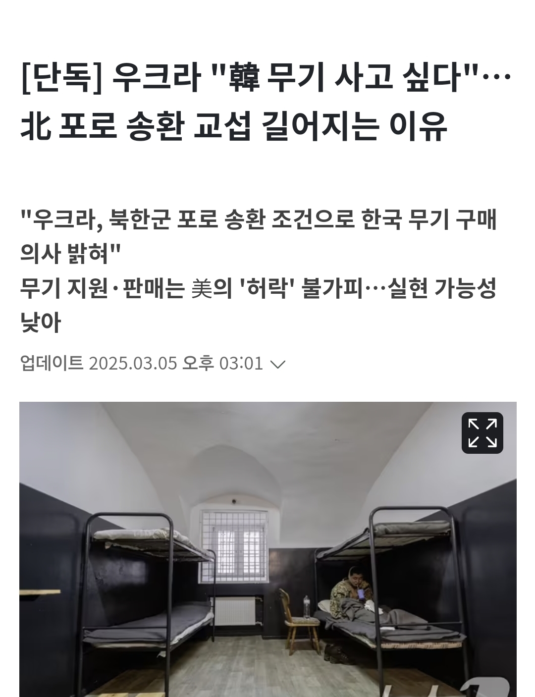 그리고 무기랑 포로 교환하자가 아님 무기 우리한테 팔아줘 그럼 북한포로들 보낼깨 임 | 25.03.05 17:39 | | |