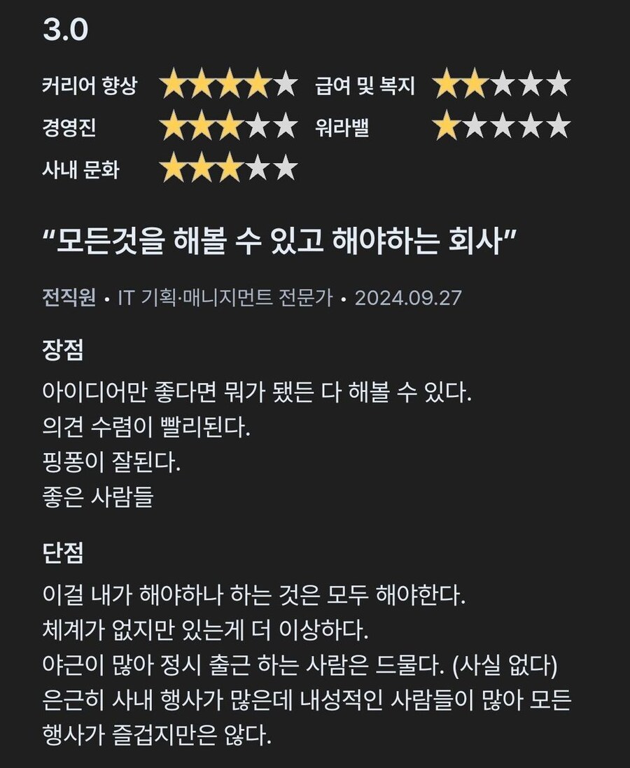 게임회사인데 아이디어 교류가 잘 되고 사람들이 좋다.. 이거 진짜 큰 장점인데 | 25.03.05 20:04 | | |