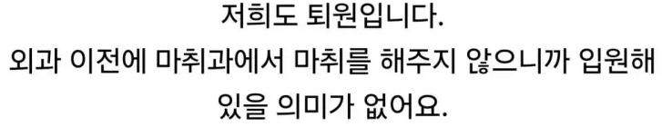 수술전에 약이고 뭐고 음식 먹지말라고 슈십번을 이야기해도 쳐먹고 "매일 먹던 약이라 괜찮은줄 알았어요."이럼.