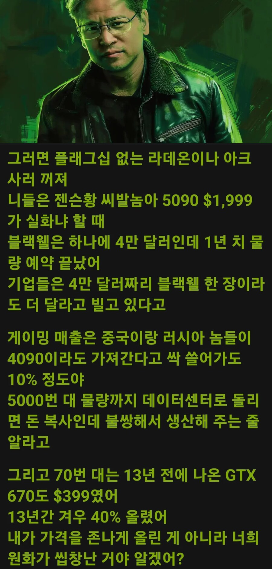 엔비디아를 떠나서 전자제품에서 가격 낮아지는거 보기 힘들다는거 | 25.03.06 01:33 | | |