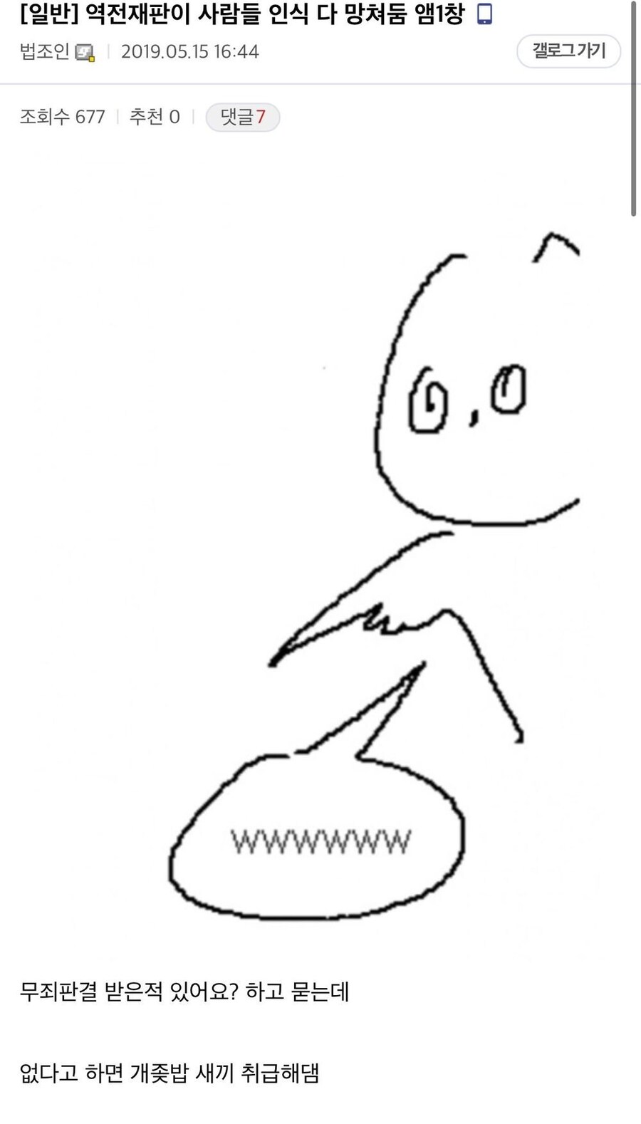 저 세계관 재판은 서심재판이라고 영장실질을 좀 비틀어놓은 느낌이라 충분히 말이 되고 무죄는 1년에 두어개 정도씩은 받지. 형사사건 갯수만 충분하면 | 25.03.06 12:33 | | |