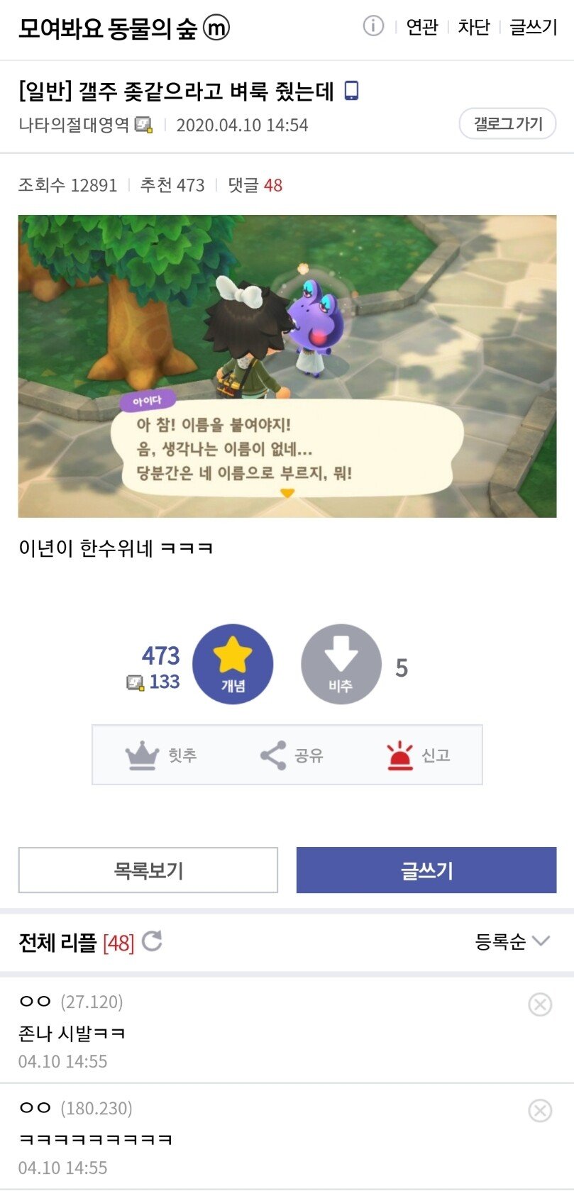 동숲에서 너무 악의적으로 디자인해놓은 애들이 있어서 뭐라 못하겠다