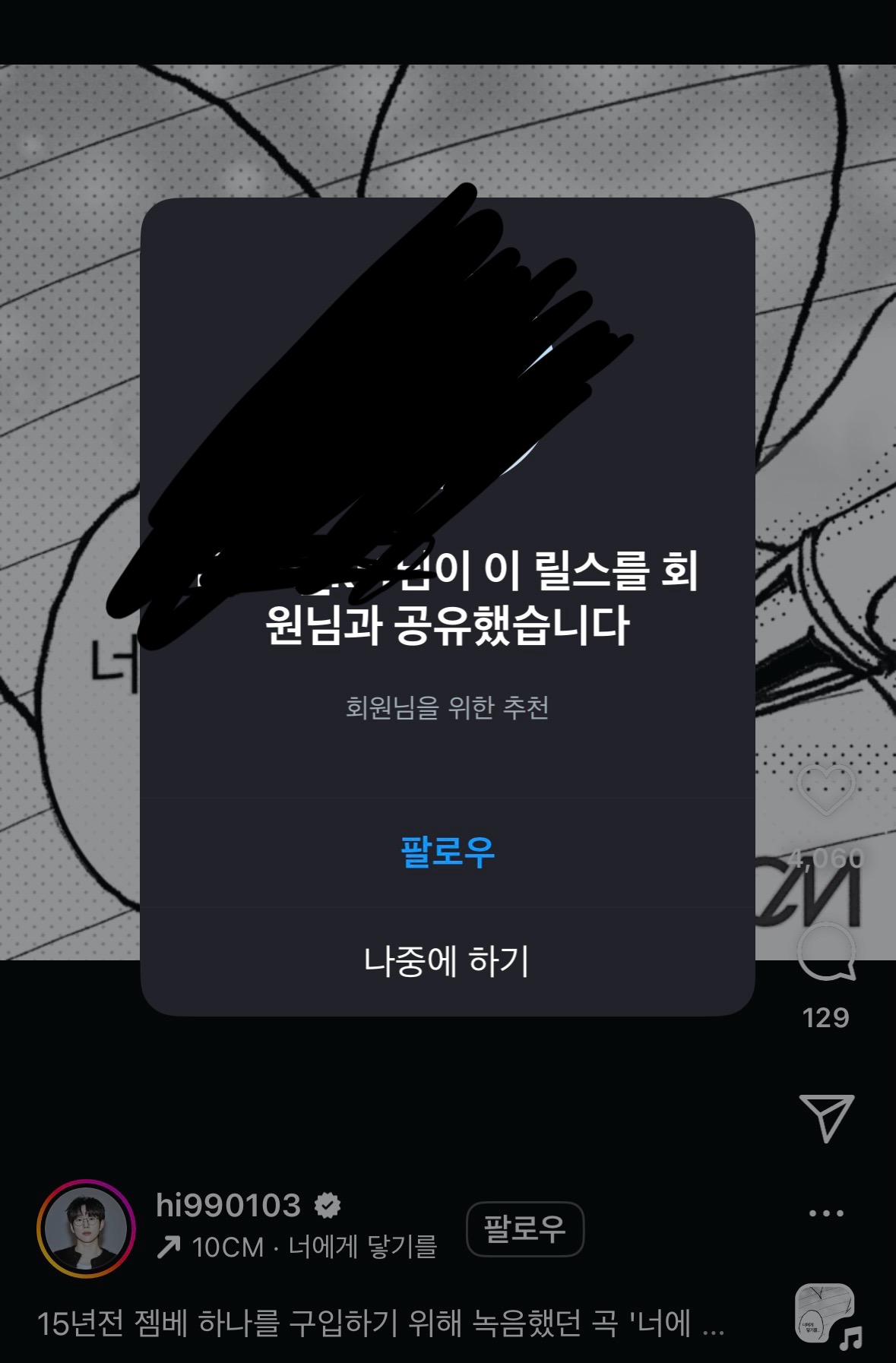 ㅇㅇ저기로가지는데 앱으로보면 그 위에 팝업으로 ~님이 공유하셨습니다 팔로우하시겠어요? 뜨더라 | 25.03.06 19:40 | | |