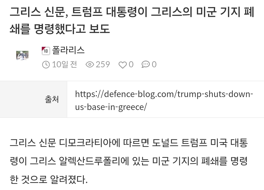 트럼프가 꽂은 정보기관 수장들이, 정보기관 업계에서 예전부터 '신뢰할 수 없다'는 평을 받았던 사람들인지라... 툴시 개버드 꽂는거 보고 정보공유 하지 말아야 겠다고 결심한 국가들이 꽤 많을걸? | 25.03.07 10:26 | | |