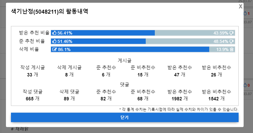 활동내역을 봐 어그로야 유게에서 꼭 이상하게 공격적인 새끼들 보면 활동내역 곱창나 있고 부계임ㅋㅋㅋ | 25.03.07 17:32 | | |