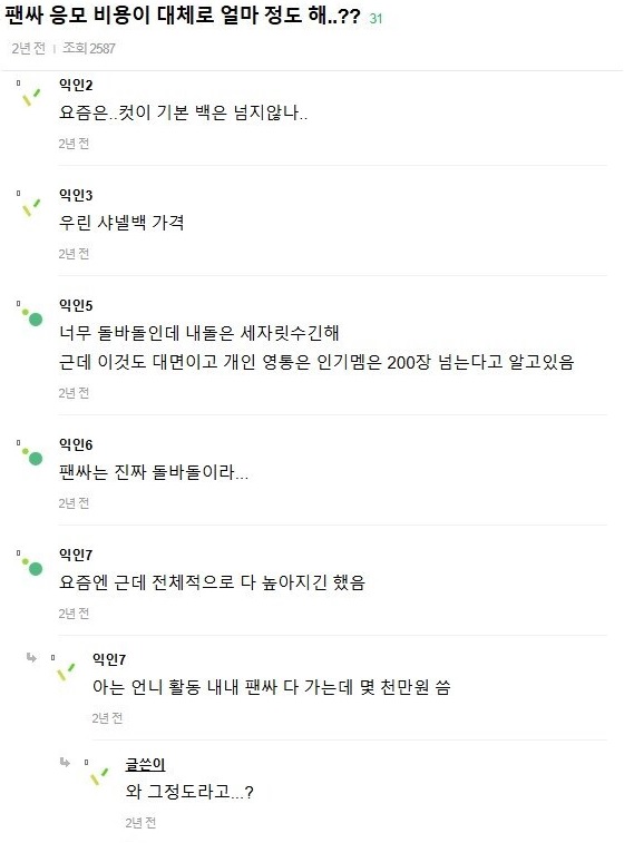 아 진짜요? 는 저정도 수준은 아님 총 비용은 150만원 조금 넘기는 한데 팬싸 응모비용은 60이었음 | 25.03.07 19:41 | | |