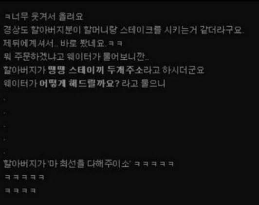 근데 스테이크집 고기를 웰던으로 구우면 진짜 망하는 거긴 함.. | 25.03.08 03:32 | | |