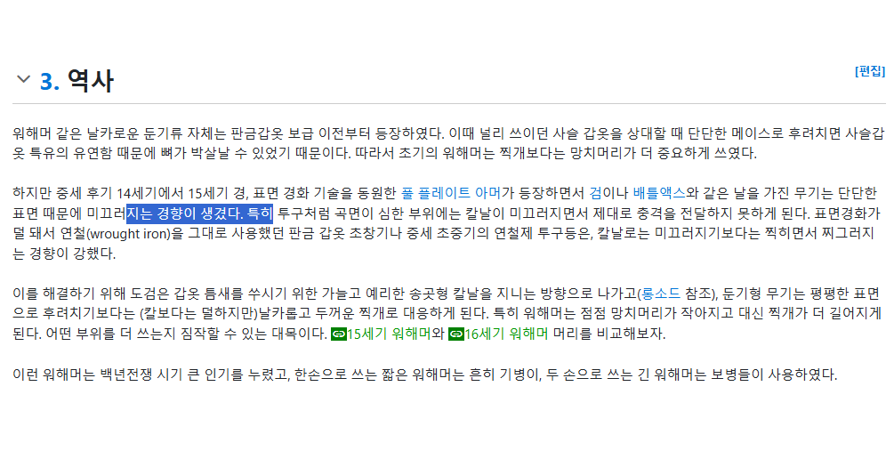 사실 내가 제일 놀랐던 건 워해머나 할버드가 갑옷 부수려고 만든 물건이 아니었다는 거였다 그리 묵직한 걸로도 갑옷 박살내는 건 무지 힘든 거라고 하더라