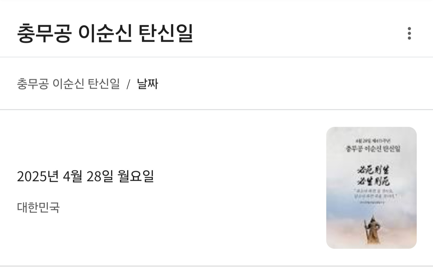 그냥 충무공 탄신일만 찾았나봐 | 25.03.08 09:15 | | |