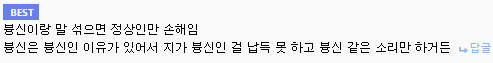 븅신이 븅신인걸 알면은 븅신아냐 븅신은 븅신이 븅신처럼 븅신인걸 몰라야 븅신 | 25.03.08 10:10 | | |
