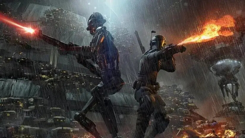 만달로리안 중에 두 손으로 쏘는건 오히려 장고 펫외엔 드물었음 디즈니 인수 전부터 클론전쟁 3D라던지 각종 일러스트 등에서 한 손으로 쏘는 경우가 많던거 생각하면 장고 펫의 화염방사기가 구식인 묘사 같음