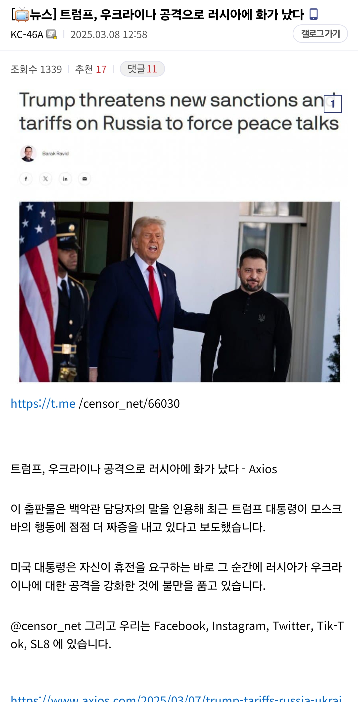 트럼프놈이 지 편 들어주는데 러시아는 아주 신나지 | 25.03.08 14:42 | | |