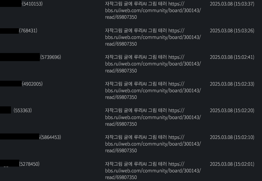 내가 본것만 해도 일곱놈이고 전부 글 링크 추가해서 차단박음
