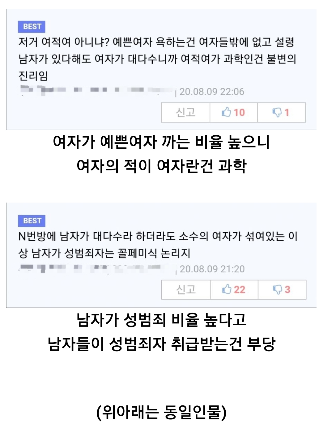 ???:'남초커뮤는 절대 여초랑 다르게 억측으로 비난안해'