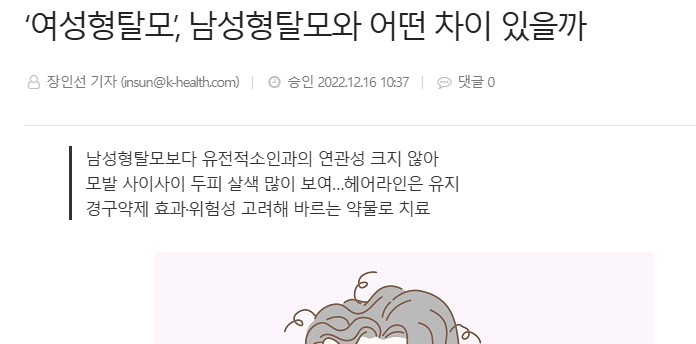 여성은 탈모 오는 경우도 적지만 탈모 와도 여성형 탈모는 남성형 탈모랑 다르게 너무 축복 받은듯