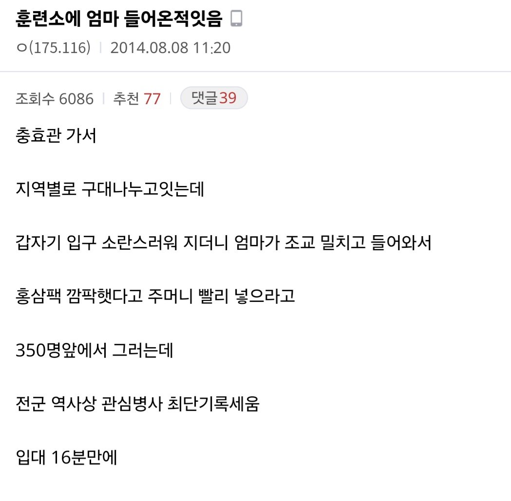 듣기로는 행사끝나고 부모님이랑 해어질때 조교가 말 함부러했다고 싸운놈도있다고들었는데 ㅋㅋㅋㅋㅋ | 25.03.09 13:07 | | |