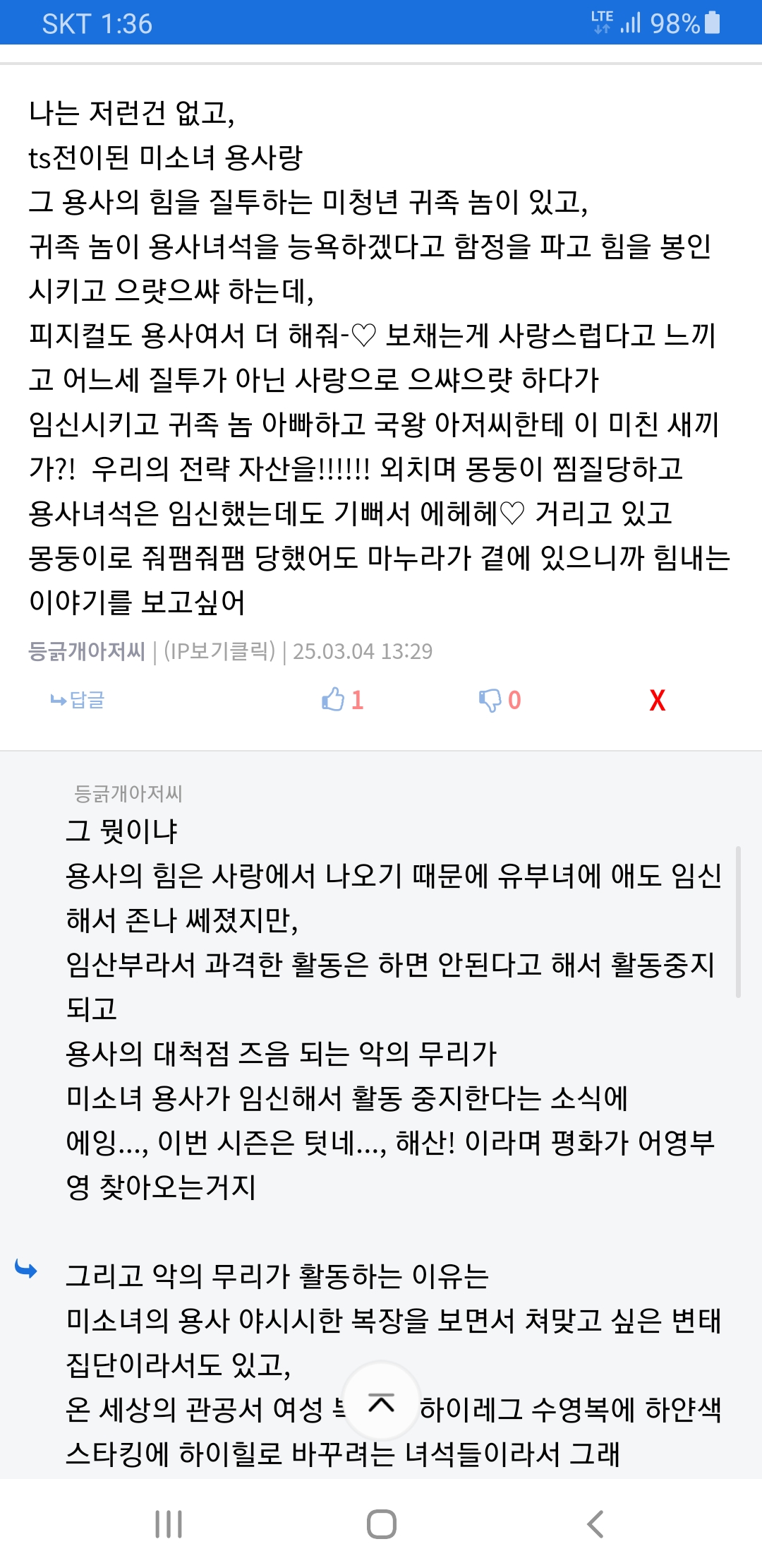 뭔소리니. 네가 써와야지. 강철도 녹이는 TS물을 써오려므나 | 25.03.09 14:02 | | |