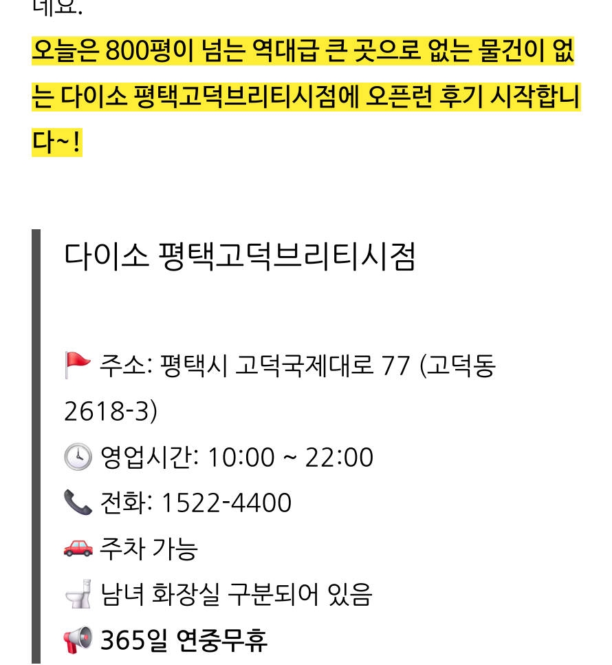 평택에 800평짜리 다이소는 다이소가 아니던데