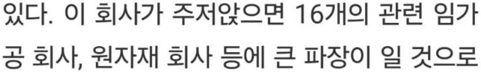 뭐 저 회사 불쌍하니까 살려주자 이게 아니라 쟤가 100억이 어딨어서 그돈으로 물건을 만들겠니 다 자재 회사 원료회사 운송회사 미수금으로 잡혀있는거지 쟤가 죽으면 다른 회사들도 다같이 떼이는거 쟤는 손해봐도 다른 회사들은 손해보면 안되겠지? | 25.03.10 13:07 | | |