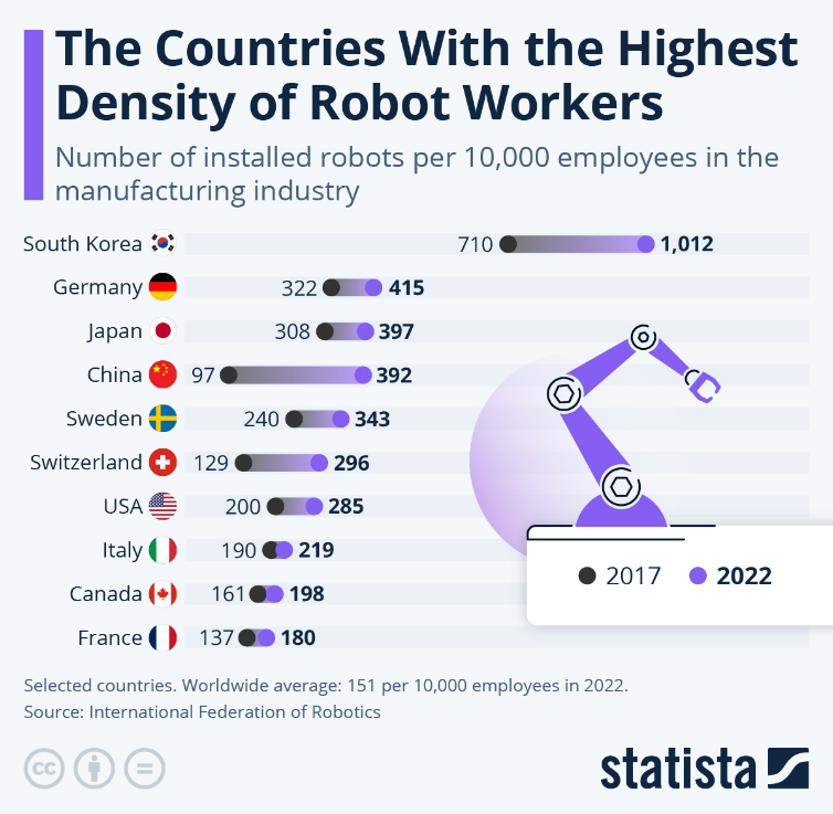 대부분의 부가가치가 높은 산업은 자동화 전제로 공장이 지어져있음 안그런 산업들은 진작에 나가 떨어져서 사양산업 되었고