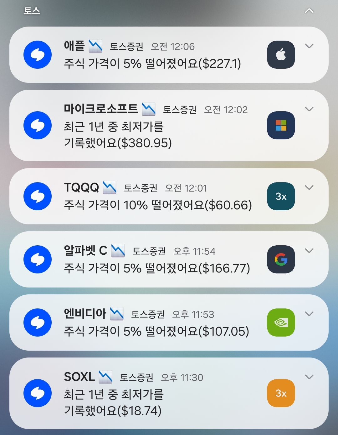 관세 전쟁 중인 트럼프가 경기 침제도 배제 안한다고 하면서 미장이 전체적으로 하락 중인데 특히 한국 사람들 투자 많이한 기술주들의 하락 폭이 큼.