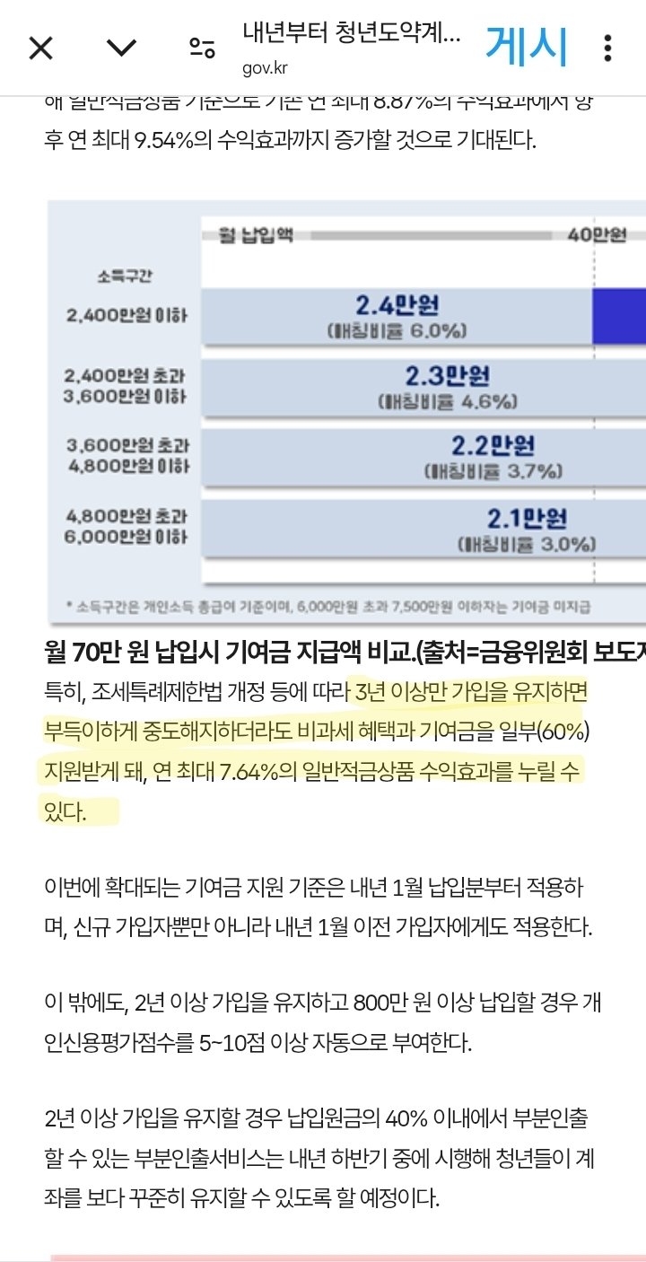 https://www.gov.kr/portal/gvrnPolicy/view/H2412000001131223?policyType=G00301&Mcode=11218 3년 이상 가입 후 중도해지해도 수익 효과는 받을 수 있음 | 25.03.11 11:11 | | |