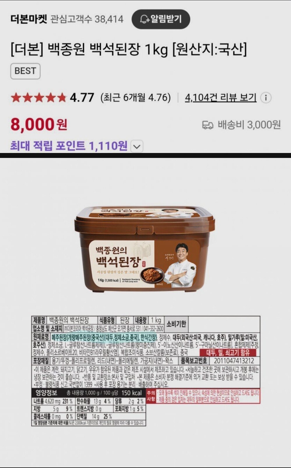 원재료가 해외산이고 다 정상표기 함 문제가 되는요소는 저 된장의 생산부지가 국산을 써야만 내주는 특해가 있는 장소에 있다는거 | 25.03.11 12:14 | | |