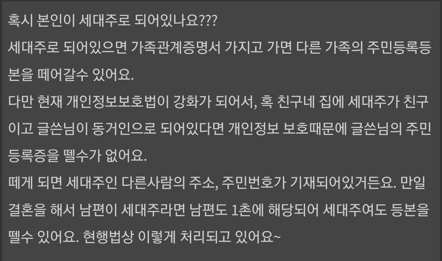 세대주의 자녀라는건 주소가 같기 때문에 같이 산다는거 | 25.03.11 20:55 | | |
