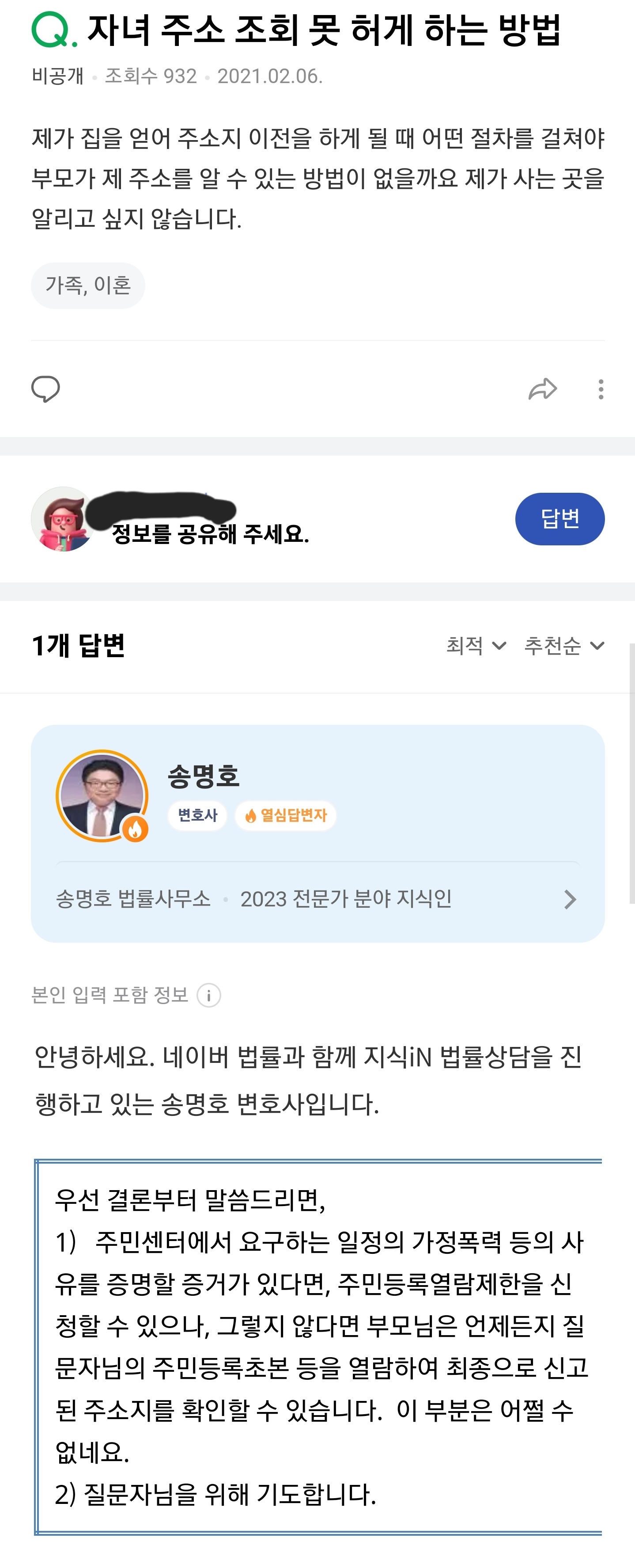 주소를 몰라도 부모면 자식 초본 뗄 수 있고(독립 된 세대주가 돼도) 그걸로 주소 알 수 있는듯 다른 관계면 모르겠는데 일단 부모자식은 세대주가 문제가 아닌걸로 보임 | 25.03.11 23:17 | | |