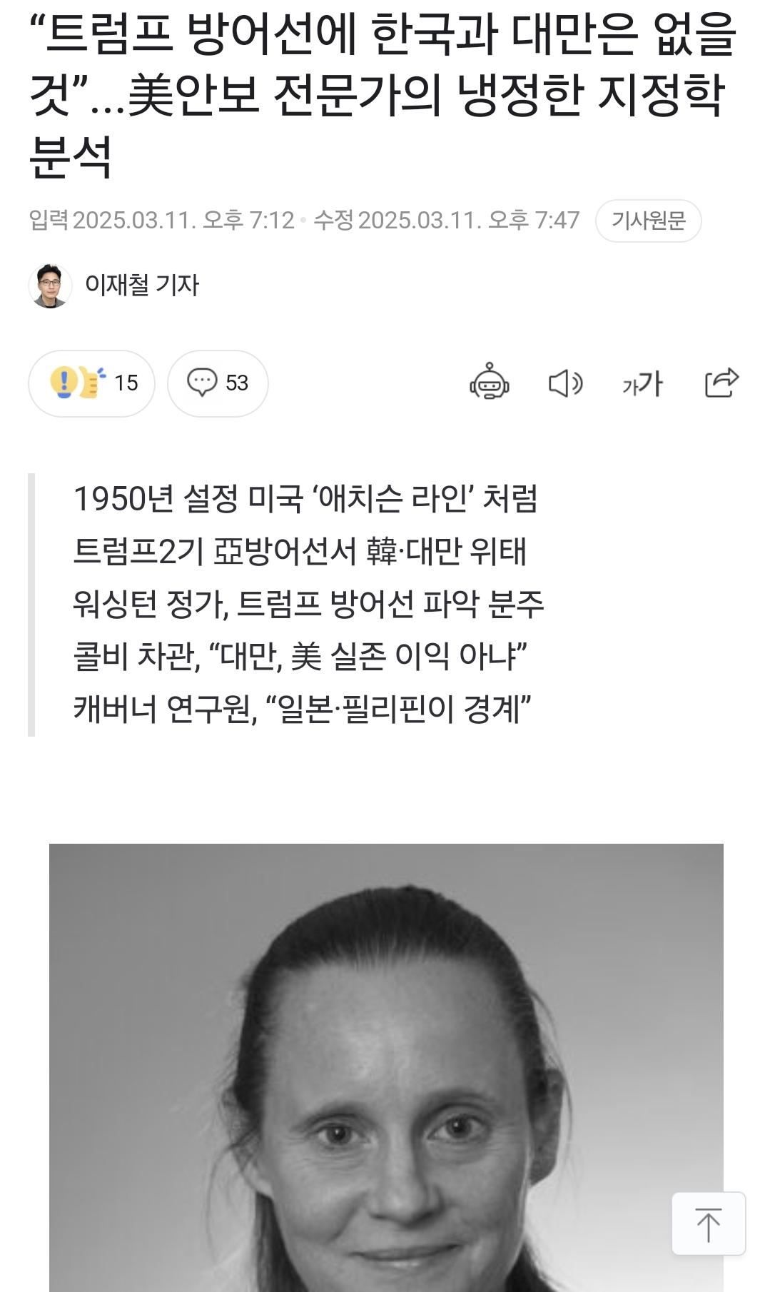저 기사는 콜비 차관도 아니고 콜비와 성향이 비슷하다는 한 연구원의 얘기임...저 사람 말만으로 뭘 할수는 없긴하지. | 25.03.12 12:38 | | |