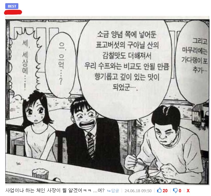 저 사장이 개인으로서는 한명의 달인이라서 그러함 자기 라멘이 고만고만하다는 말을 들은건데 무례하다고 느낄 수 있지 | 25.03.12 01:11 | | |
