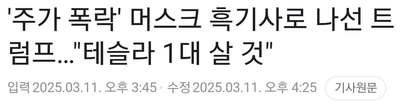 특정기업 주가 방어라고 하면 좀글킨한데 자국 산업 보호라는 명목으로 나가면 할말없긴함. | 25.03.12 02:30 | | |
