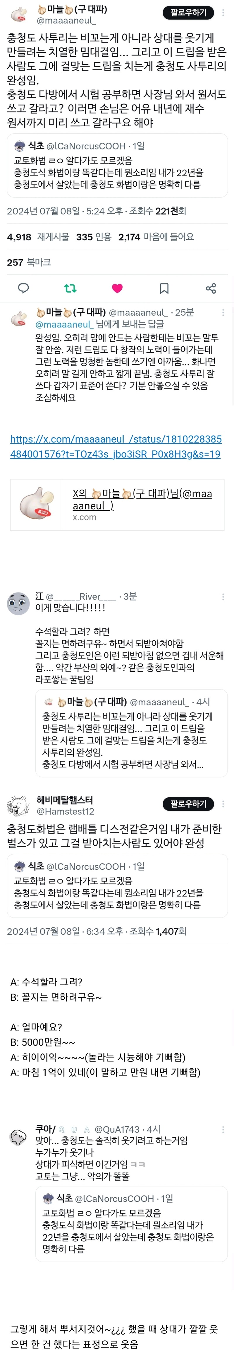 저렇게 드립 한 번 들으면 두고두고 기억해뒀다 써먹고, 그럼 그 다음 사람이 나중에 또 써먹음 그게 반복된 게 지금의 충청도